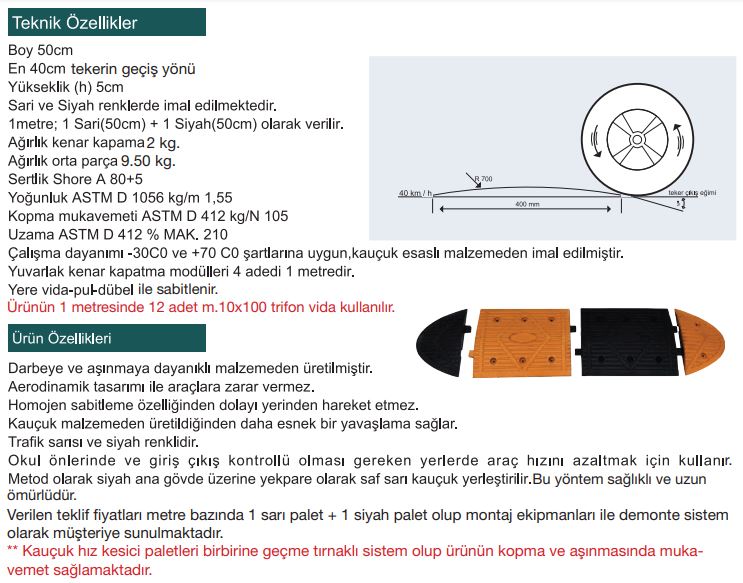 DAMALI MODEL Kauçuk hız kesici 500 x 400 x 50 mm